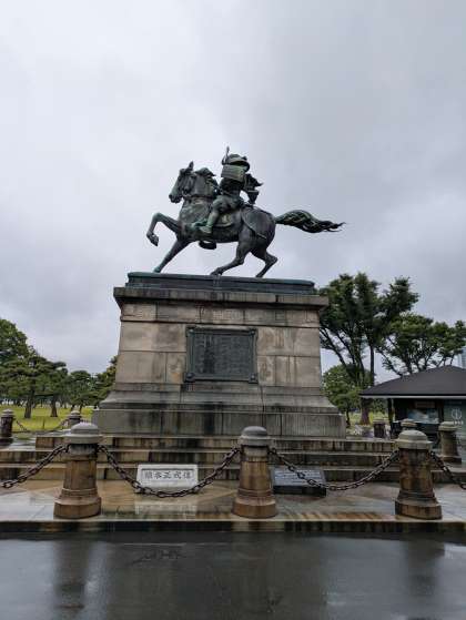 お台場を後にしてレインボーブリッジを渡り、銀座のビル街を抜けました。そして、皇居外苑にあります「楠公レストハウス」で昼食を取ります。その名の由来となった、楠木正成公像を臨む一角にあり、皇居参観や公園利用者のための休憩所として建てられた施設です。