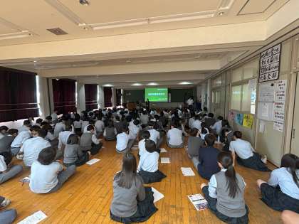 5時間目には公立高校を代表して桂高校から、私立高校を代表して京都文教高校から講師の先生をお招きし、それぞれの高校の受験の方法や高校の特徴についてのお話をしていただきました。保護者の方と3年生が一緒にお話を聞きました。