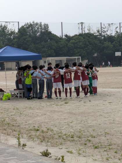 サッカー部は夏季大会の初戦を大枝中学校グラウンドで行いました。対戦相手は洛南附属中学校でした。朝一番の組み合わせでしたが、気温も高い中での試合となりました。