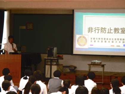 7月14日(月)2限目、2年生は非行防止教室を京都市教育委員会の先生を講師にお招きして行いました。様々な犯罪に巻き込まれる可能性がある現代。犯罪に巻き込まれないためには、まず「法律を守ることが大切」というお話がありました。その後、SNSのトラブルや大麻など薬物乱用の怖さなどを教えていただきました。また自転車によるトラブルを防ぐことも重要で、ルールを守ることでこれらのトラブルを回避できるということでした。最後に代表生徒からの御礼の言葉には、「私たちは、どんなときもこれは大丈夫?と疑問をもつことで、安全に対処できるということに気づいたという言葉がありました。これから夏休みになりますが、今日の話を忘れずに過ごせるといいですね。