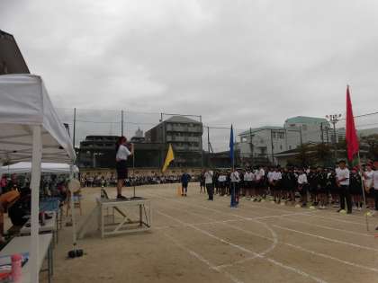 15日(水)、翌日に降った雨のため、当日の朝に体育健康委員の皆さんには少し早く登校してもらい、最終の準備をし、無事予定通りの時間に開始することができました。体育健康委員の皆さん、ありがとうございました。