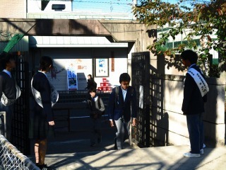 10月29日(水)から生徒会役員選挙の選挙活動が始まり、朝の挨拶運動が行われています。今年は13人が立候補してくれました。校舎の入り口には、立候補者のポスターも貼られています。選挙活動は11月4日(火)まで続きます。毎朝、元気よく挨拶している姿をみていると、11月5日(水)の立会演説会も頑張ってくれるのではないかと感じます。あと少しの選挙活動ですが、しっかり自分をPRして、演説会に臨んでくださいね。