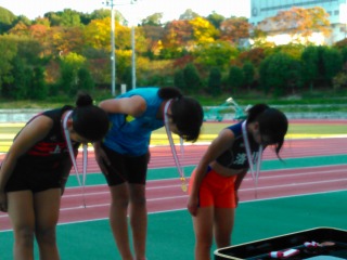 今シーズン最終の競技会であるカンコー杯陸上が終わりました。個人種目者3名全員が決勝進出、そして8位以内入賞、そして学校得点を獲得し、学校対抗順位総合8位入賞まで『あと0.5点』というところまで迫りました。京都市駅伝競走と同様、カンコー杯陸上でも、あと一歩の<9位>に終わりましたが、「総合入賞までもう少しの所までチーム力を高めてきた」ことは事実です。しかし、「今ひとつ実力が不足していた」という結果も素直に受け止め、来シーズンでは確実にチーム入賞できるよう、これからの冬季鍛錬期を「倦(う)まずた弛(たゆ)まず」、精進していきますので,今後とも応援いただきますようお願いいたします。
