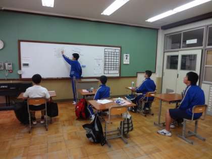 「“送る会”ではさみしすぎます!」という意見から、7組では卒業を祝う会を一足先に行いました。2年生が話し合いの中心となり、プログラムから送る言葉まで考えました。3年生の好きなスポーツや、“昼休みには必ずやった”といったような思い入れのあるゲームをしました。最後の送る言葉では、一人ひとりが3年生にメッセージを送り、また3年生が一人ひとりにメッセージを返す場面もありました。