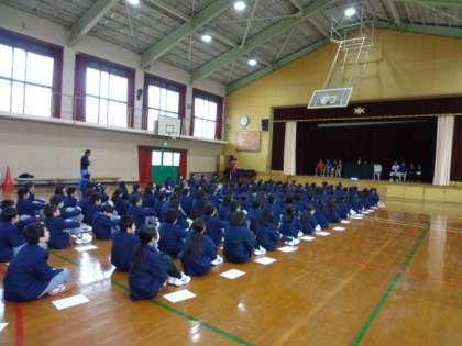 6限目に新入生対象の部活動紹介がありました。上京中学校にある12の部活動のキャプテンや部長が、活動報告や戦績、今年度の目標を発表しました。