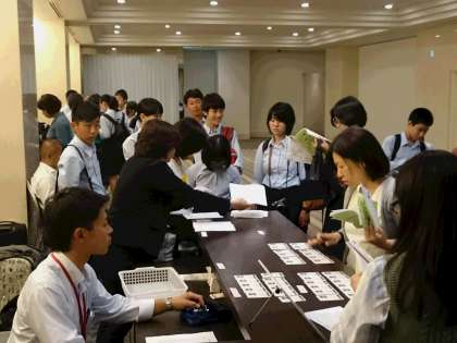 班別研修を終え、次々にホテルへ帰着。チェックインしているところです。