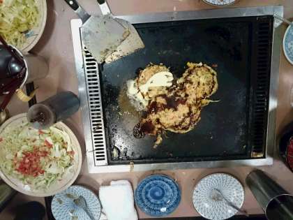 なかなかの作品!ミッキーのできあがりです。〆の焼そばでもんじゃ