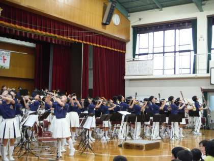 9月10日(土)新町小学校で開催されたトワイライトコンサートで上京中学校の吹奏楽部が演奏を披露しました。新町小学校音楽部の心のこもった演奏、京都市消防音楽隊による迫力のある演奏に続いて上京中学校吹奏楽部が登場しました。すばらしい演奏に会場いっぱいの皆様からの大きな拍手をいただきアンコール曲も披露しました。温かい応援ありがとうございました。これからもよろしくお願いします。