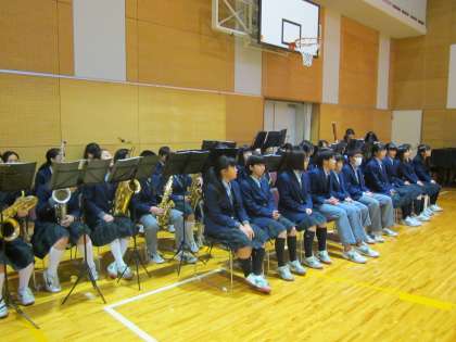 北総合支援学校で行われたミニコンサートに本校の吹奏楽部と生徒会中央委員の生徒が参加しました。このミニコンサートは今年で3回目を迎え、北総合支援学校の中等部の皆さんと楽しい時間を過ごすことができました。吹奏楽部の演奏は楽器の紹介や昨年話題になった「恋」など誰でも楽しめる内容で、北総合支援学校の生徒の皆さんと一緒に踊ることもできました。
