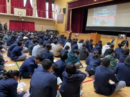 12月15日(月)6限 体育館にて全校道徳を実施しました。
