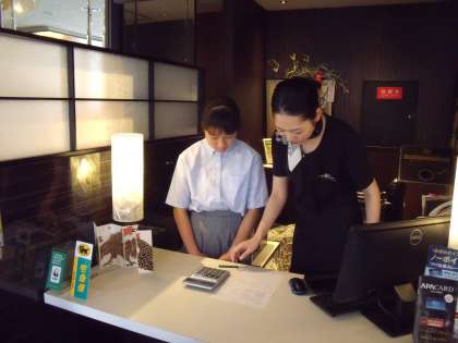 APA HOTELです。受付の様子です。多くのことを学んでくださいね。ベッドメイキングも上手にできるようになりました。