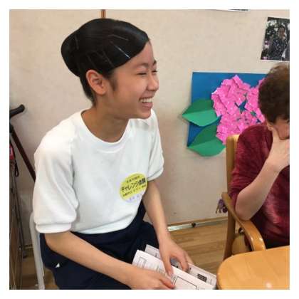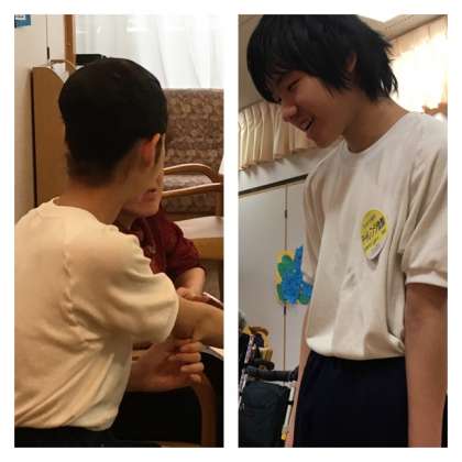 紫野老人デイサービスでは利用者の方とお話ししていました。話題づくり、考えて話しているようです。嘉楽中出身の方もおられました!