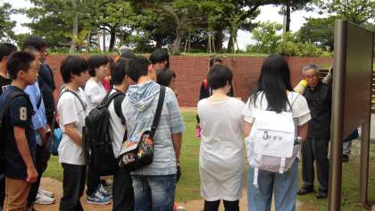 写真下:語り部の方のお話を神妙に聞き入る3年生