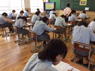2年生第2回定期テスト三日目です。3限目美術のテストの様子。これで終わり、みんなはテンションマックスです。