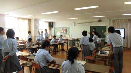 写真中:2年4組(英語)