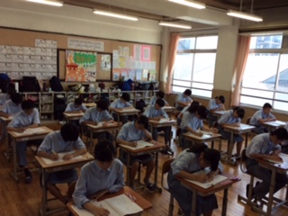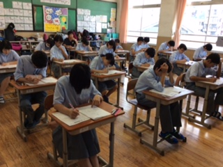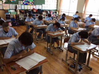 2年生、本日の1限目と2限目は学習確認プログラムの4教科目と5教科目、理科と英語です。やりきりました。
