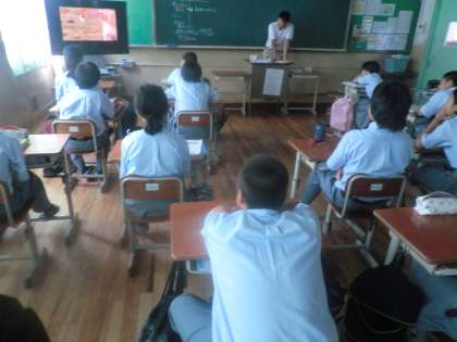写真 左:1−2社会、真ん中:1−3理科、右:1−4美術