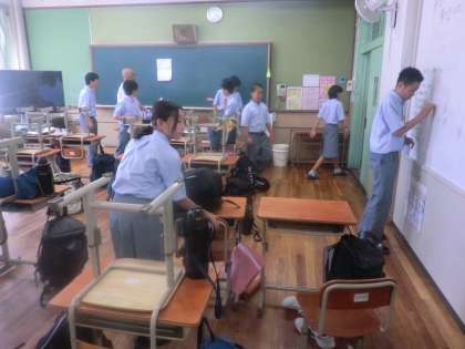 学習終了日には、全員で大掃除を行いました。