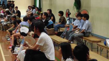 写真は,試合前練習および応援席です。
