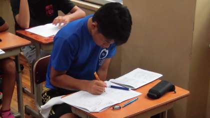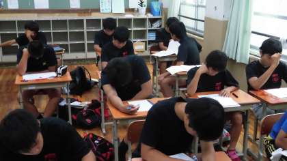 学習に取り組んでいるラグビー部員たち。