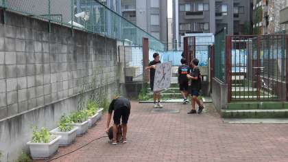 午前中の練習を終え片付けています。