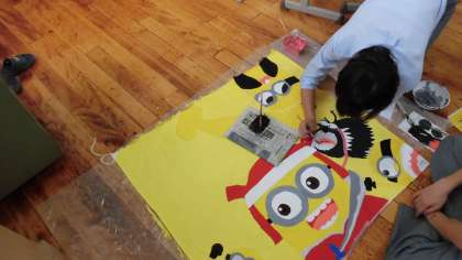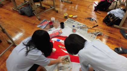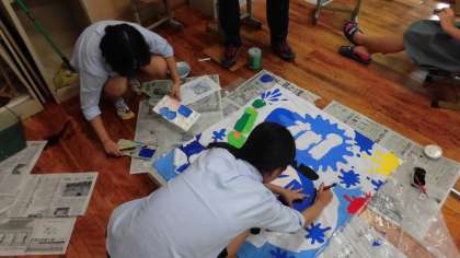 団旗の作成中(体育の部)