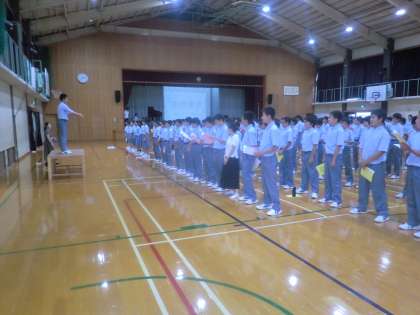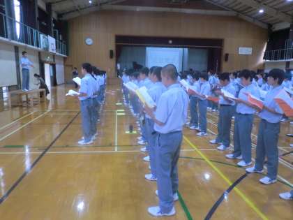 全校集会での生徒会の進行で、上級生に見習いながら歌いました。
