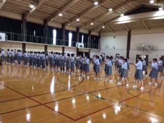 2年生、文化の部の舞台発表練習中。たった数秒が・・・むちゃくちゃ難しいです。