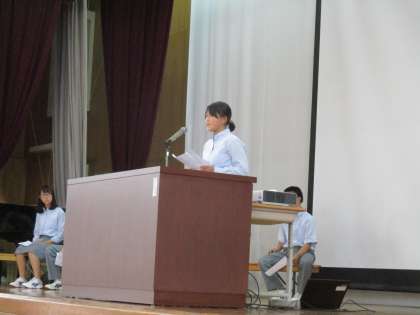 1組、4組、2組発表者です。それぞれの思いがわかりやすく述べられ、強い決意が述べられているのが印象的です。