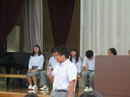 本日の発表について、先生からの講評がありました。それぞれの想いがことばのひとつひとつに、感じられました。審査は迷うことでしょう。発表者は緊張したことでしょうが、とてもよい発表となっており、堂々とした3年生らしい姿でした。