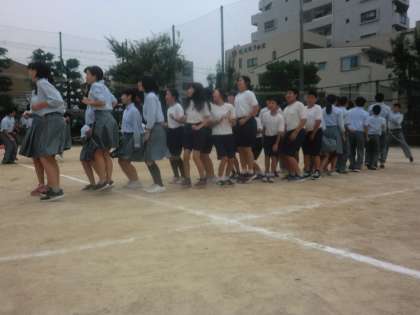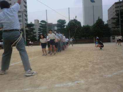 1年生も2・3年生に挟んでもらって懸命にジャンプして練習しています。