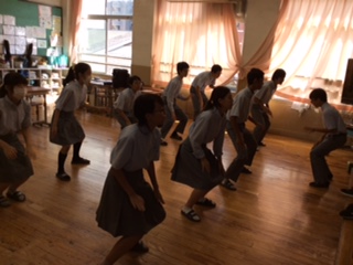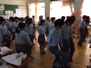 学年出し物練習中。残り3パート