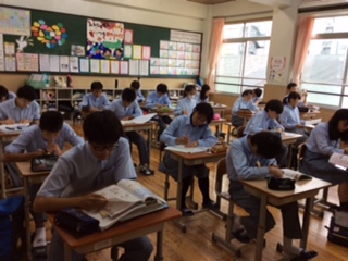 2年生、第3回定期テスト1限目の自習時間の様子。集中、全力、全開です。