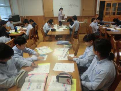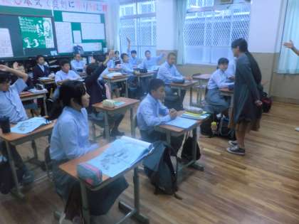 写真上:1−2は社会です。T.T.による授業です。