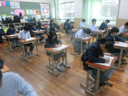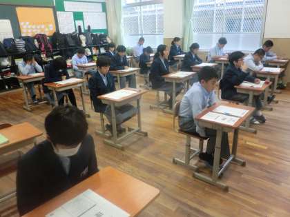 写真中:1−4・・・1限の理科テストの開始直後の瞬間