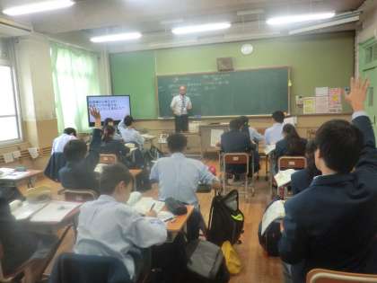 写真は、上から1−2(社会)、1−3(英語)、1−4(国語)の様子です。