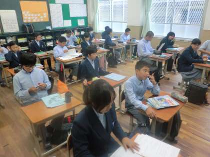 5時間目の授業は、写真上から、1−3英語、1−4国語、1−2社会ですね。