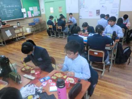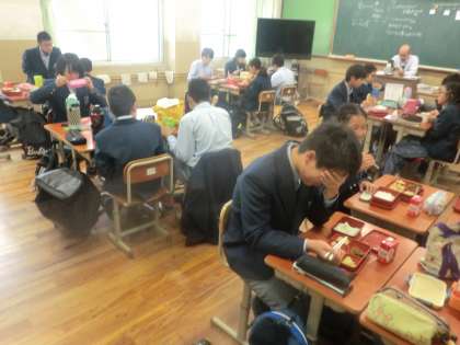 4時間目の道徳を終えて、お昼のお弁当の時間です。