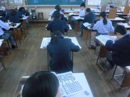 写真上:1−2美術・・・美術室で、絵文字を創作していました。