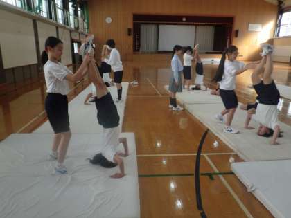 1年女子:器械体操・マット運動(写真下)