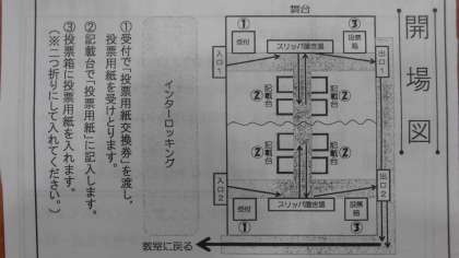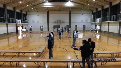 体育館では,投票箱や