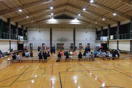 本校の体育館で,バドミントン部の