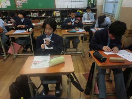 来年度、2年生に進級した5月には、生き方探究チャレンジ体験を行うことになっています。いわゆる「職場体験学習」です。その準備を始めました。今年度のうちに、何時間もかけて事前学習を行っていきます。今日は、その第1回目として職業アンケートをとりました。みんなしっかり考えてアンケートに回答していました。