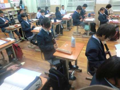 11月17日の、朝鮮中級学校との交流に向けた取り組みも進んでいます。昼休みには、女子が着物の帯を結う練習をして、おもてなしの準備をしていました。6時間目には、リコーダーの練習も行い、交流に向けてとても上手に合奏できるように仕上がってきています。