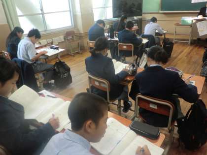テスト一週間前に入ってから、朝の読書の時間は、学習の時間に切り替えています。