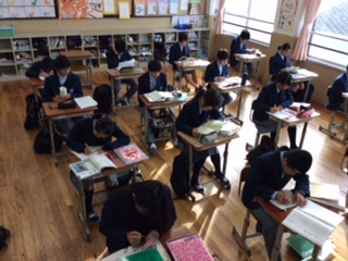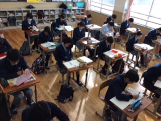 2年生第4回定期テストの二日目の様子です。1限目、2限目と自主学習の時間です。結構な勢いで頑張ってます。