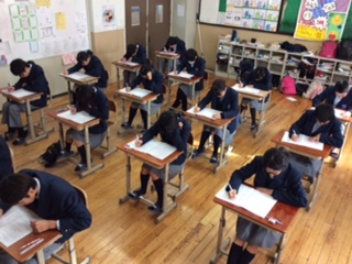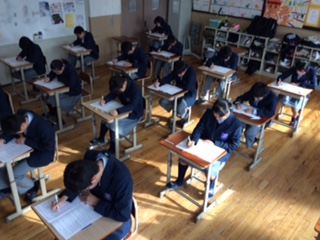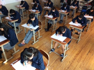 2年生第4回定期テスト二日目。第3限は保健体育のテスト。水泳や陸上、ソフトボールの問題について全力全開。