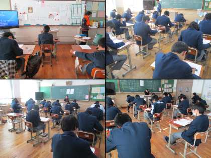 3日目の定期考査の様子です。英語を受けています。1組は数学を受けています。