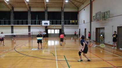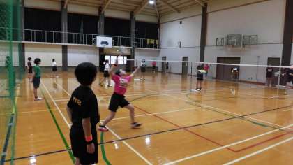 体育館では,女子バドミントン部が