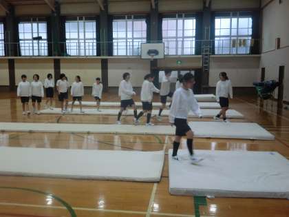 女子は、体育館で器械体操(マット運動)でした。